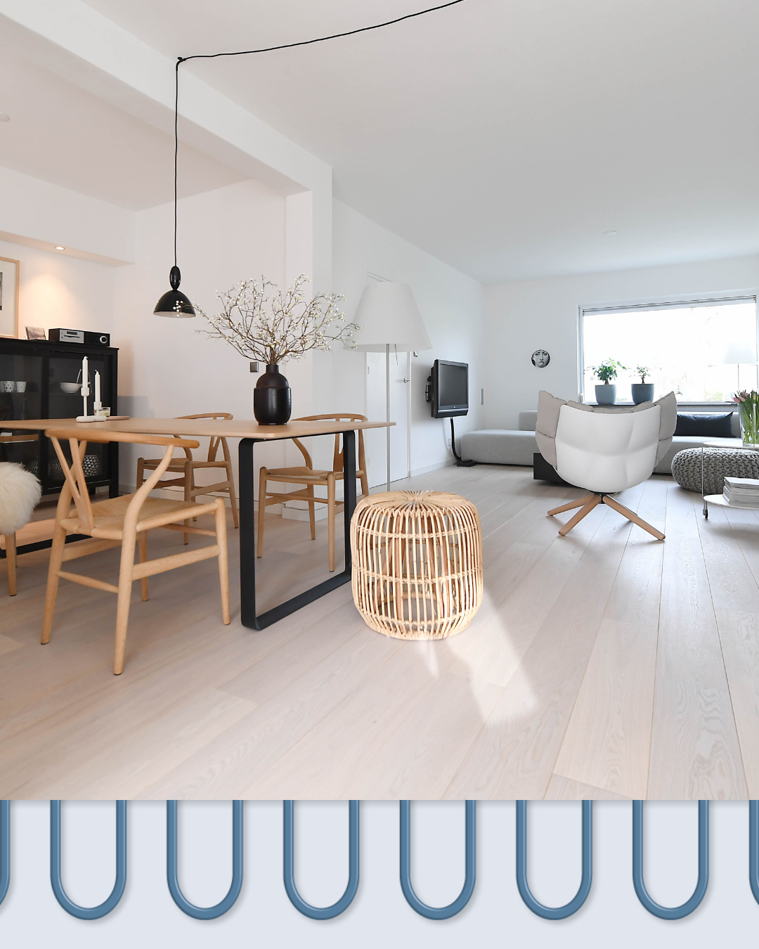 Een belangrijke trend in de woninginrichting is het creëren van eenheid. We trekken de vloer vaker door over de gehele verdieping. Door de waterbestendige eigenschappen van modern PVC en laminaat kan de vloer van de woonkamer naadloos doorlopen in de keuken en de hal, wat rust en eenheid creëert.